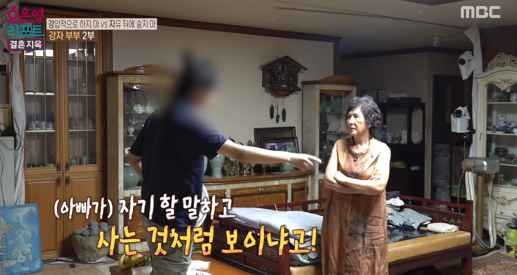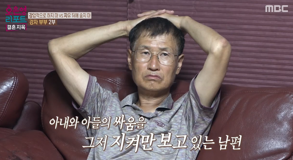 여기서 남편은 아내와 둘째의 싸움이 시작되자마자 등을 돌려 자리를 피해버립니다. 점점 격해지는 싸움 속에서 아들이 엄마에게 패륜적인 욕설을 이어가는데도 아무런 반응 없이 그저 싸움을 지켜보기만 합니다. MC 문세윤은 남편이 계속해서 둘째 아들을 감싸는 모습을 보고, 아들에게 먼저 엄마에게 사과해 보라고 얘기는 해본 적이 있는지 질문을 했습니다. 그러나 아빠의 입장은 둘째 아들과 아내의 갈등의 뿌리가 너무 깊어서 갈등의 당사자들이 해결해야 할 문제라고 생각했습니다.