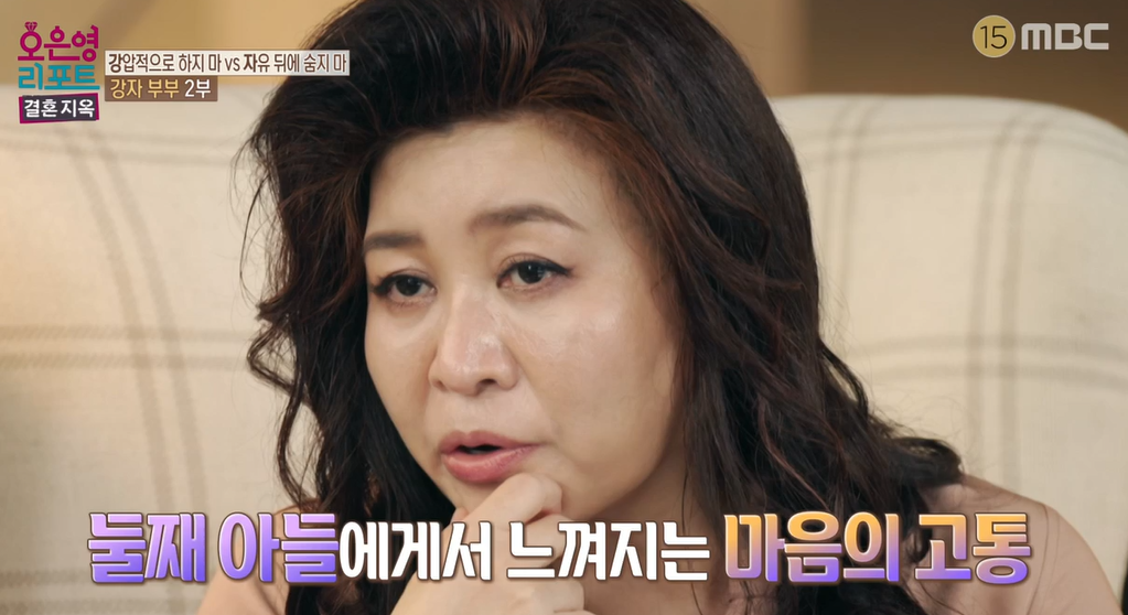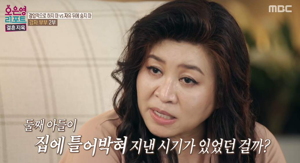 둘째 아들은 어렵게 시험관 시술을 통해서 얻은 아이였습니다. 몸에 좋다는 음식은 다 챙겨 먹어가며 낳은 아들이었습니다. 그리고 가족을 위해서 철인처럼 살아왔는데, 지금은 이 집에서는 아내의 진심을 알아주는 사람이 없습니다. 두 아들 걱정에 마음이 무거운 아내는 남몰래 눈물을 흘리고 있었습니다. 둘째 아들이 집에 들어오면 극도로 서로가 예민한 상태에서, 주방에 있던 칼들을 방안에 숨겨놓고 생활하고 있었습니다. 아들과의 갈등 속에서 과도한 걱정을 하면서 살아가고 있습니다.