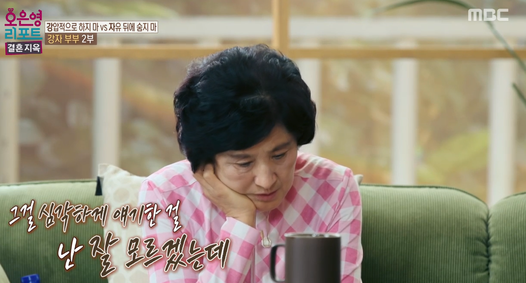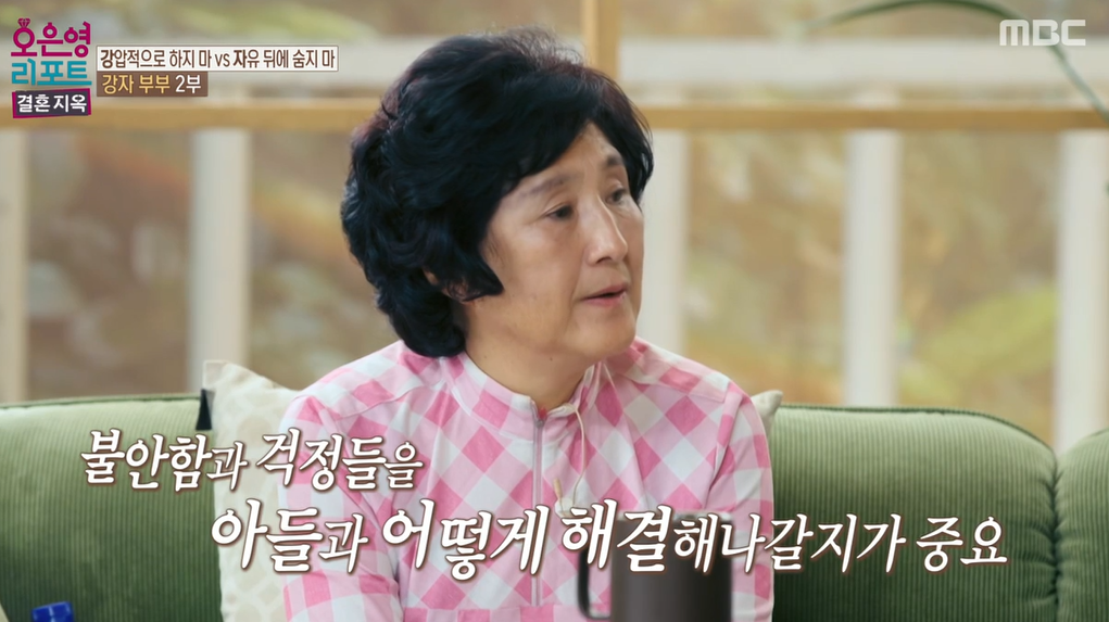 아내는 지금까지 자신이 가진 불안을 온통 부정적인 말들로 표출해 왔습니다. 아들에게는 그런 서툴기만 한 사랑이 깊은 상처로 남게 되었고, 남편이 아들에게 했던 말들은 아내에게 또 부정적으로 다가왔습니다그러면서 부부사이에서는 서로에 대한 깊은 오해가 쌓이게 되었고, 아들은 두 사람 사이에서 가장 힘든 시간을 보내게 되었습니다. 따라서 오은영 박사는 아내의 마음속에 가득 찬 걱정들을 화가 아닌 단순한 걱정하는 마음 그 차체로 표현하는 게 중요하다고 얘기합니다.