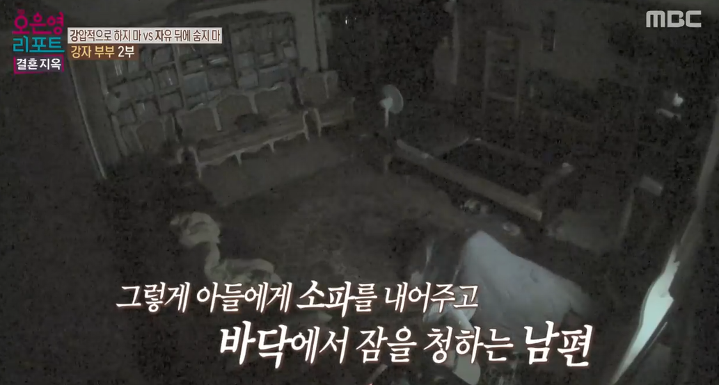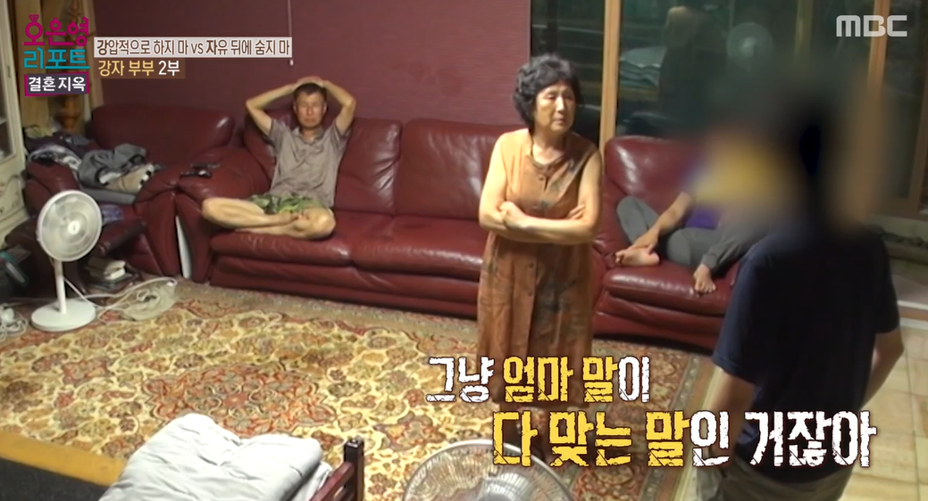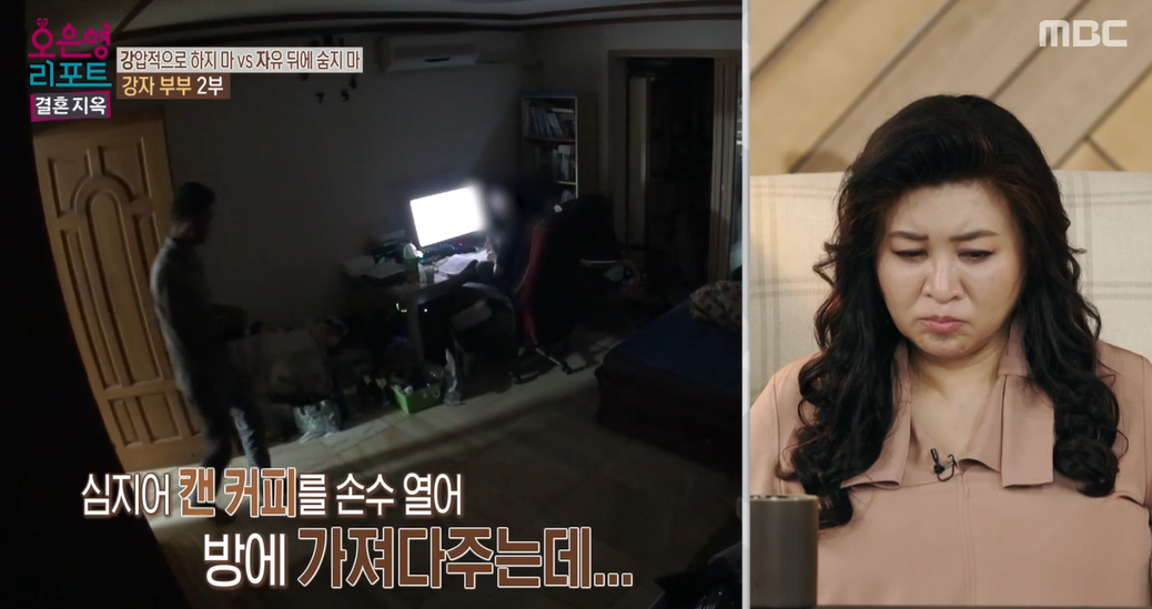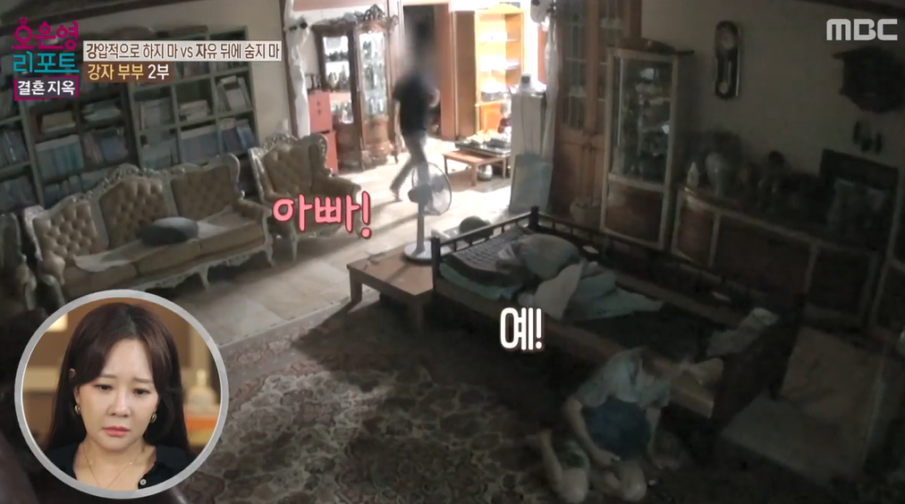 남편은 아들에게 거의 몸종처럼 행동을 하고 있었습니다. 스무 살이나 먹은 아들에게 세탁기에 빨래를 넣을 줄 아는지 물어봅니다. 아들이 아빠를 부르자 아빠는 "예"라고 대답을 합니다. 물론 깜짝 놀라서 그랬을 수도 있지만, 사소한 하나하나까지 모두 챙겨줍니다. 아들을 정말 아기처럼 대해줍니다. 다만 무서운 아기처럼 생각하고 대하는 모습입니다.