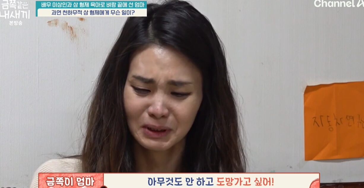 이상인의 아내는 평소 남편에게조차 말하지 못했던 속내를 털어놓으며 결국 눈물을 보였다. "아무것도 안 하고 도망가고 싶다"는 한 마디는 그녀가 오랫동안 쌓아온 육체적·정신적 피로가 한계에 도달했음을 보여주는 절절한 고백이었다.